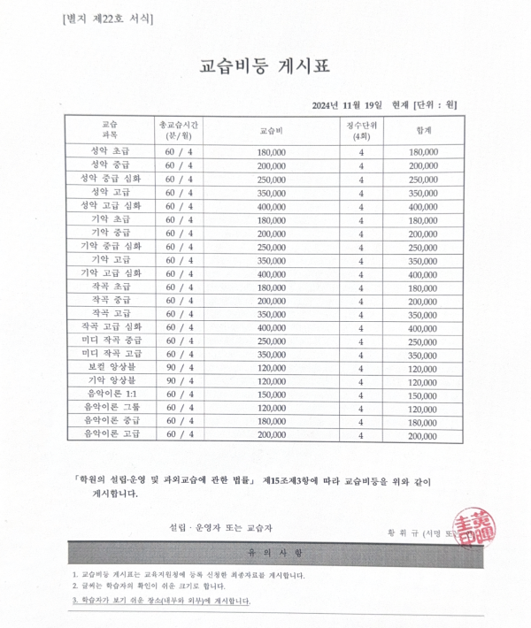 교습비 공지